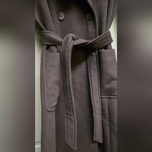 Never worn made in Italy, gorgeous chocolate brown angora fur collared coat, trimmed sheepskin, and wool. Has a tie belt that can be worn with or without since there are no belt loops.