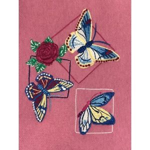 C & K designs NWT Pink Sweatshirt Embroidered with Butterflies& Rose Size Small