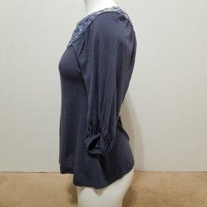 C. Keer top Small Fenestella Tee crochet neck peasant metallic Anthropologie