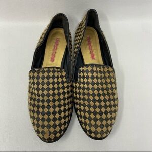 C Label Black and Gold Checkered Slip On Flat Loafers. Women’s Size US 7.5