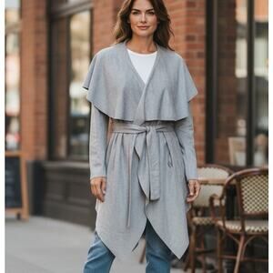 C. Luce Faux Suede Jacket Coat LG Gray Slouchy Shawl Collar Drapery Uneven Hem