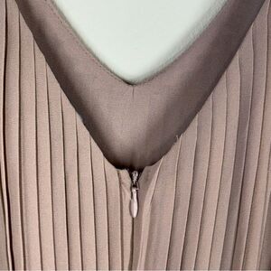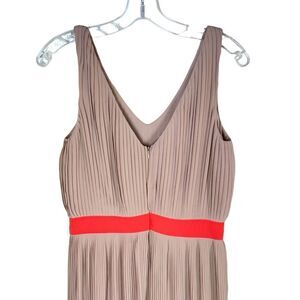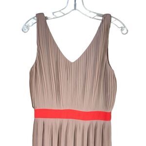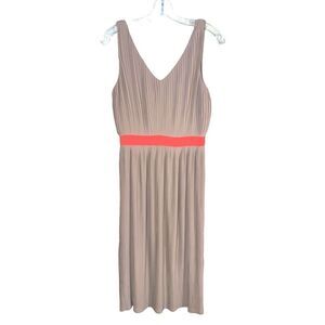 C. Luce Micro Pleats Midi Dress in Tan & Orange Wide Strap Tank Size Medium. Partially lined. Banded waist. Hidden back zipper.