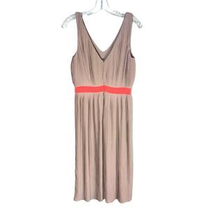 C. Luce Micro Pleats Midi Dress in Tan & Orange Wide Strap Tank Size Medium