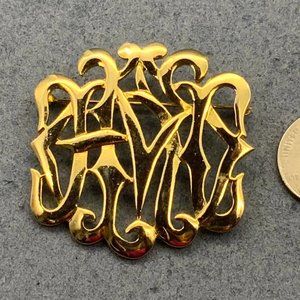 C M Lient Monogram Brooch Pin As Is Scrollwork Gold Shiny Initials