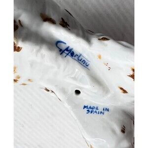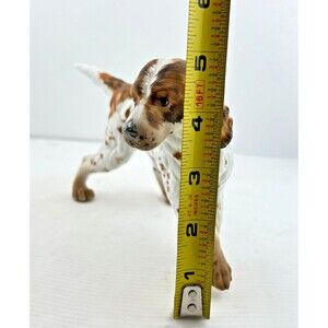 Not 100% sure if this is an Irish Red & White Setter, or an English setter, but appears to be some type of pointer bird hunting dog. Very pretty figurine made of fine porcelain by C. Martinu in Spain. Signed on the under belly area. Likely vintage, age unknown. See measurements in photos.