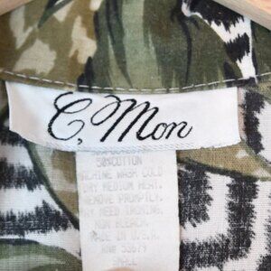 This vintage C, Mon shirt channels classic island vibes with bold, oversized florals and jungle-inspired patterns in an iconic 90s palette. Featuring a relaxed fit with short sleeves, a soft camp collar, and tropical energy throughout, it’s a timeless summer statement. Made in the USA, tagged size Small.