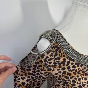 C. OLIVER Women S ANIMAL SILVER BEADED EMBELLISHED COLD SHOULDER CUT OUT TOP