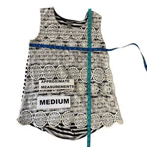 C Oliver Top Women Medium Lace Overlay Blue Stripe Tank Boho Nautical Work Knit