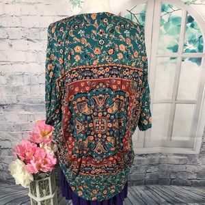 C Open Cardigan Sz S, Green brown and red color, short sleeve, soft and fresh material in good pre-owned condition..