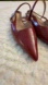 Elegant deep red flats with a sleek pointed toe. Perfect for adding a touch of class to any outfit. Unworn, but without the box.