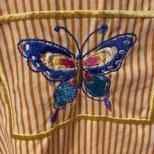 C Quacker Factory short sleeve button front orange stripe plus size shirt 1X