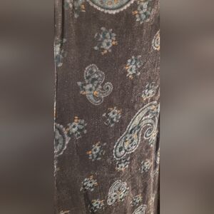Beautiful silk velvet in grey. The fabric has a luxurious reflective quality. The design is varying paisley shapes. Maxi length