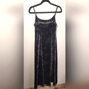 NWT rare find Ralph by Ralph Lauren velvet and silk dress in Bohemian rhapsody style. slip dress style, with side zipper. Paisley print. The rare Tartan Label slightly ripped, but still attached. Tag reads: C1T701359 Bohemian Rhapsody ~ Steel Blue ~ 873 (the bottom portion of the tag is missing). Dress has spaghetti straps.