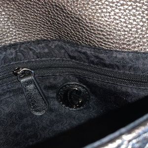 Unbranded man made material silver clutch with chain in great Preowned condition. Interior tag reads C. Fabric tag looks like CC. Questions? Comment below.
