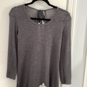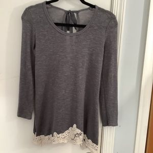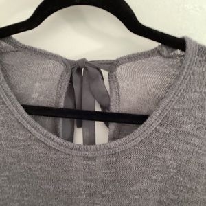 C TOP SIZE SMALL GREY EMBROIDERED LACE HEM KEYHOLE WITH BOW ON BACK