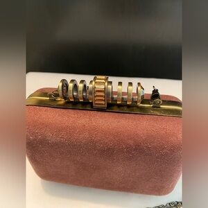 C WONDER Rust Mauve Pink Suede Gold Hard Clutch w Chain