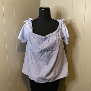 C Women’s Off the Shoulder Sleeves Striped Casual Shoulder Ties
