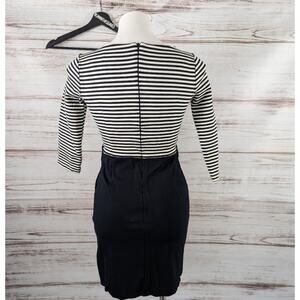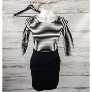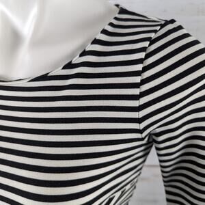 C Wonder Black and White Stripe 3/4 Sleeve Crew Neck Dress sz XS