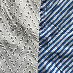 C Wonder Blue and White Striped Eyelet Short Sleeve Top