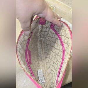 Elevate your style with this chic pink and blue clutch bag. Perfect for any occasion, this bag combines vibrant colors with a sleek design. The gold accent adds a touch of elegance.