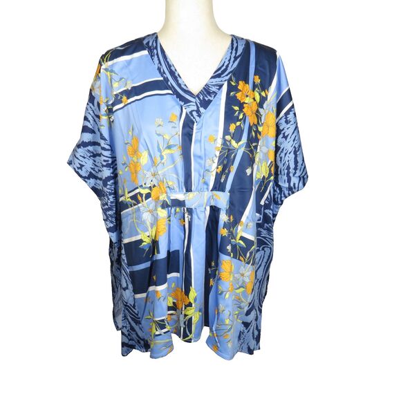 C Wonder Christian Siriano Blue Garden Floral Dolman Flowy Scarf Blouse XS-Small