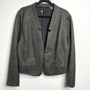 C. Wonder Knit Tweed Cropped Notch Collar Black Blazer Gold Threaded X-Large