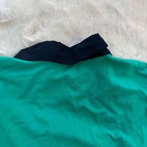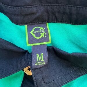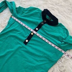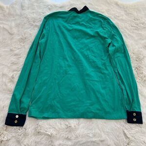 C Wonder Long Sleeve Polo Shirt Collared Top Teal Navy Gold Buttons Preppy sz M