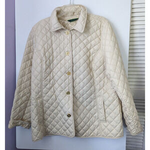 C Wonder Quilted Barn Jacket Coat Women Tapered Gold Buttons Size XL Polyester