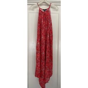 C. Wonder Women Sleeveless Halter Handkerchief Hem Dress Red Pink Paisley Medium. New with tags. Fun and Flowy. Flattering on all.