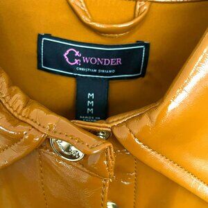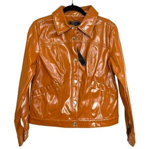 C Wonder Womens Faux Leather Jacket Medium Shiny Orange NEW