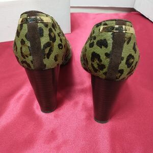 C Wonder Women's SZ 6.5M Green And Brown Animal Print Pumps .