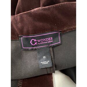 C Wonder by Christian Siriano Velvet Trouser Pant Size 12 Chocolate Plum Career