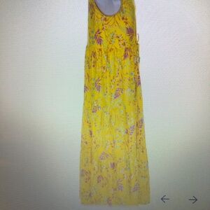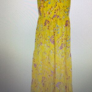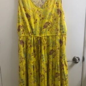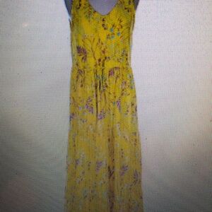 C. Wonder by Christian Soriano designs lovely dresses and this is definitely one. The fabric is soft and comfortable 90% polyester and 10 spandex. Take your look from ordinary to extraordinary in this sleeveless summery V-neck midi-length dress. The warm yellow background highlights the soft colors in the leaves and flowers. The empire waist with beaded drawstring and two tiers flatters your shape. Machine wash cold, Tumble dry low.
