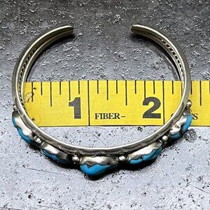 C. Yazzie Navajo Sterling Silver Open Cuff Bracelet with Five Turquoise Nuggets