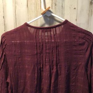 C blouse from Wrap in London shoulder shoulder 14 pit to pit 18 collar to 33 kind of a reddish brown