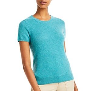 C by Bloomingdale’s 100% 2-Ply Cashmere Short Sleeve Sweater – XL – Marled Teal