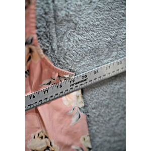 This C by Bloomingdale's sleeveless blouse features a soft blush pink background with a painterly floral print in ivory, taupe, and gray tones. The tank is fully lined for modesty and flow, with a high-low hem that adds stylish drape. A great layering piece under cardigans or jackets, or worn alone in warmer months. Labeled as size XL and measures approximately 21” across the chest. Lightweight and semi-sheer outer layer with solid inner lining.