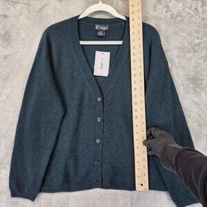 C by Bloomingdale's Cardigan Sweater Womens Medium Dark Green Cashmere Button Up