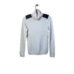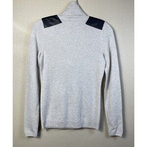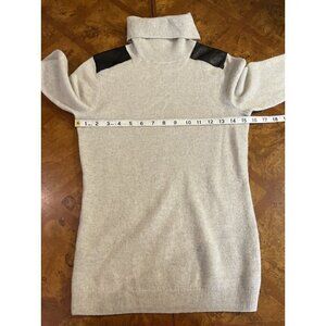 C by Bloomingdales Cashmere Turtleneck Beige Leather Patch Sweater Women's Sz XS