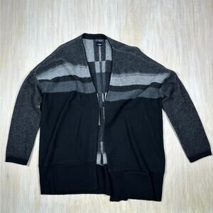 C by Bloomingdales Gray Stripe Cashmere Open Front Knit Cardigan Sweater Medium