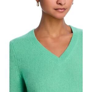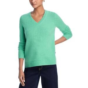 C by Bloomingdale's Women Fern Green Cashmere Knit Classic V-neck Sweater Size M