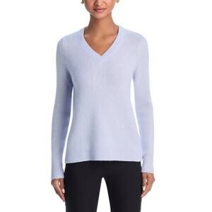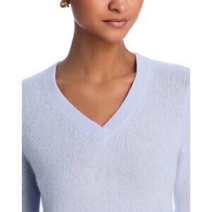 C by Bloomingdale's Women Serenity Blue Cashmere Classic V-neck Sweater Size S