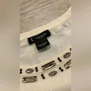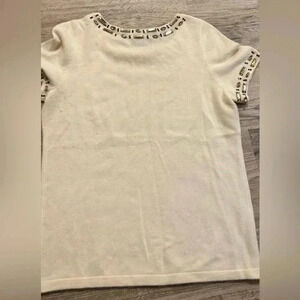 👚C by Bloomingdale’s cashmere with gems 💎 Beautiful off white women’s short sleeve.