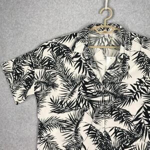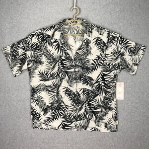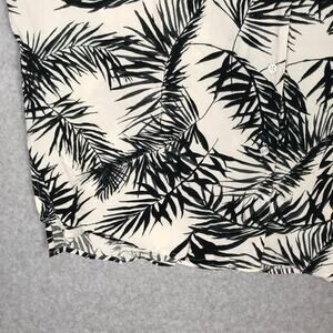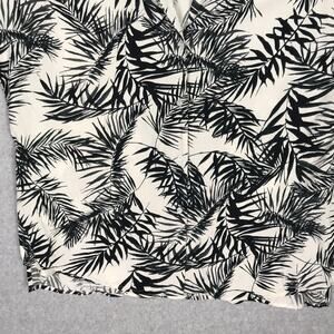 C by One Shirt Womens Large Black White Button Tie Hawaiian Palm Nautical Resort Camp Cuban Beach Vacation Resort Coastal Cream Short Sleeve Collar V Neck Tropical Floral