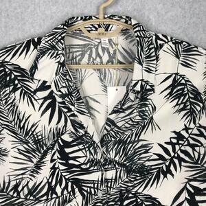 C by One Shirt Womens Large Black White Button Tie Hawaiian Palm Nautical Resort