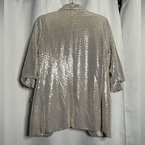 C by One Silver Sequined 3/4 Sleeve Long Line Blazer XS
