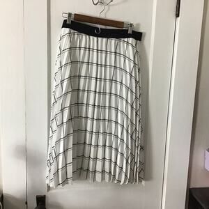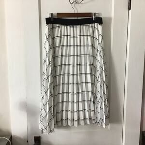 C by One Window Pane Black & White Plaid Pleated Skirt. It has an elastic waist.
