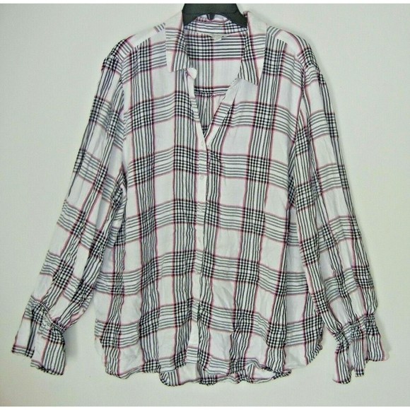 C est 1946 Size 22/24W Plaid Metallic Thread Button Down Ruffle Elastic Sleeve