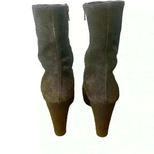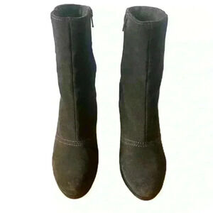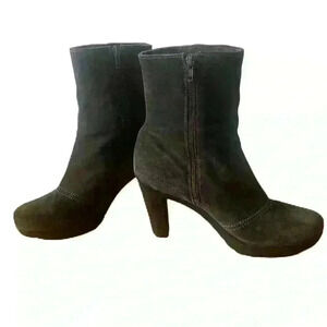 C la CANADIENNE rich brown Women’s Italian suede booties. Handcrafted in Canada with 100% suede uppers, round toe, side closure zipper, and 100% thermoplastic rubber soles. Rich brown in color with microfiber lining and 4” heel. Worn once. Excellent condition. Perfect winter dress boots. Winter