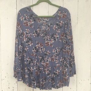 C long sleeved top. Size l. Flounced sleeves. Back has cross-cross strips. Cute top for date night!
